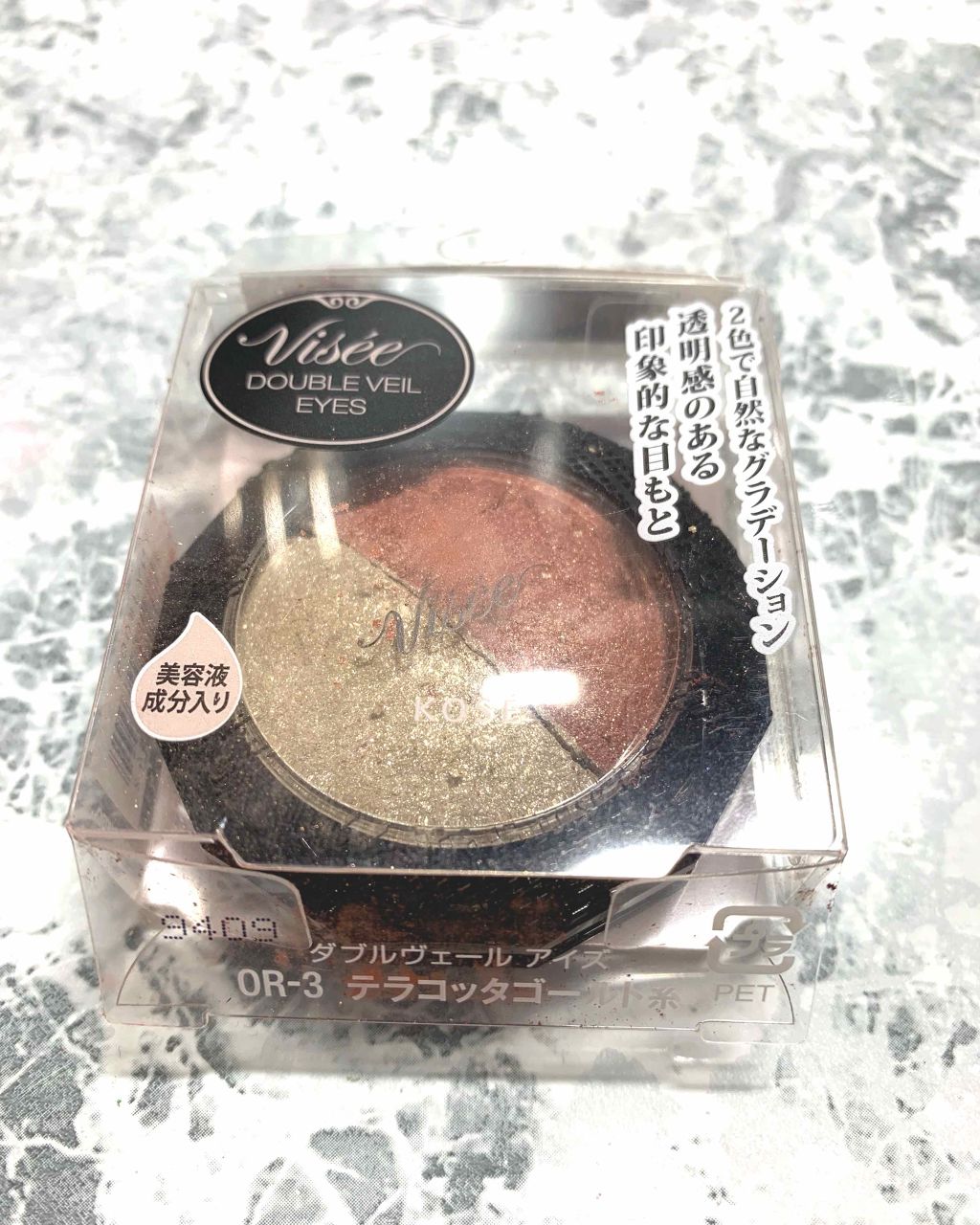 Visee新作アイシャドウ✨ダブルヴェールアイズOR-3#ダブルヴェールアイズこの色だけどこも売り切れ!(わかる!)たまたま1つ見つけて即買い!!!わりとオレンジ ピンク系のカラーが好きでよく使います(これはテラコッタゴールドと書いていますが...