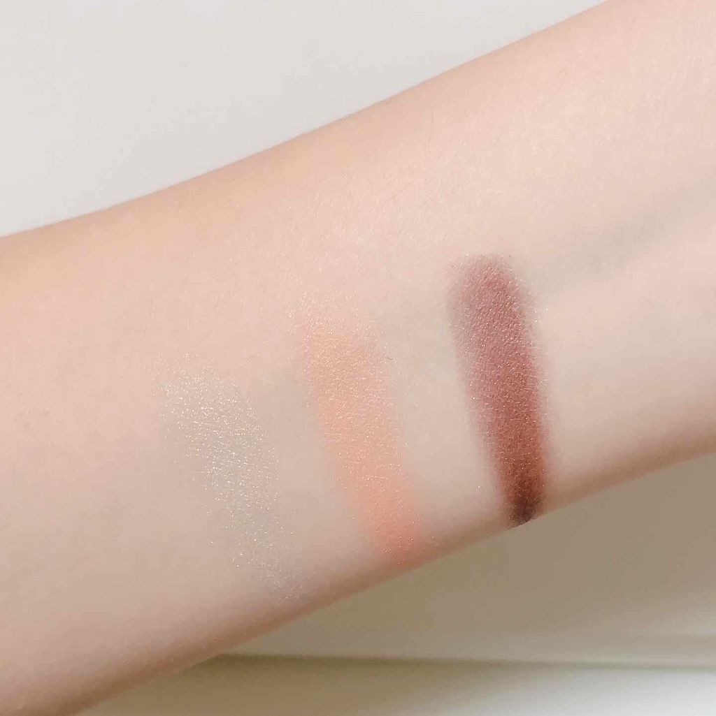 - 3色で簡単に明るく大きな目元に。 しっとり感触のアイシャドウ。 くすみを飛ばす明るさベース、ひとえ・奥二重の方でも幅広く塗れる肌なじみの良い中間色、 濃密高発色の締め色が目の輪郭を強調し大きな目元に。 微細パール配合でくすみを飛ばし、明るい目元へ。