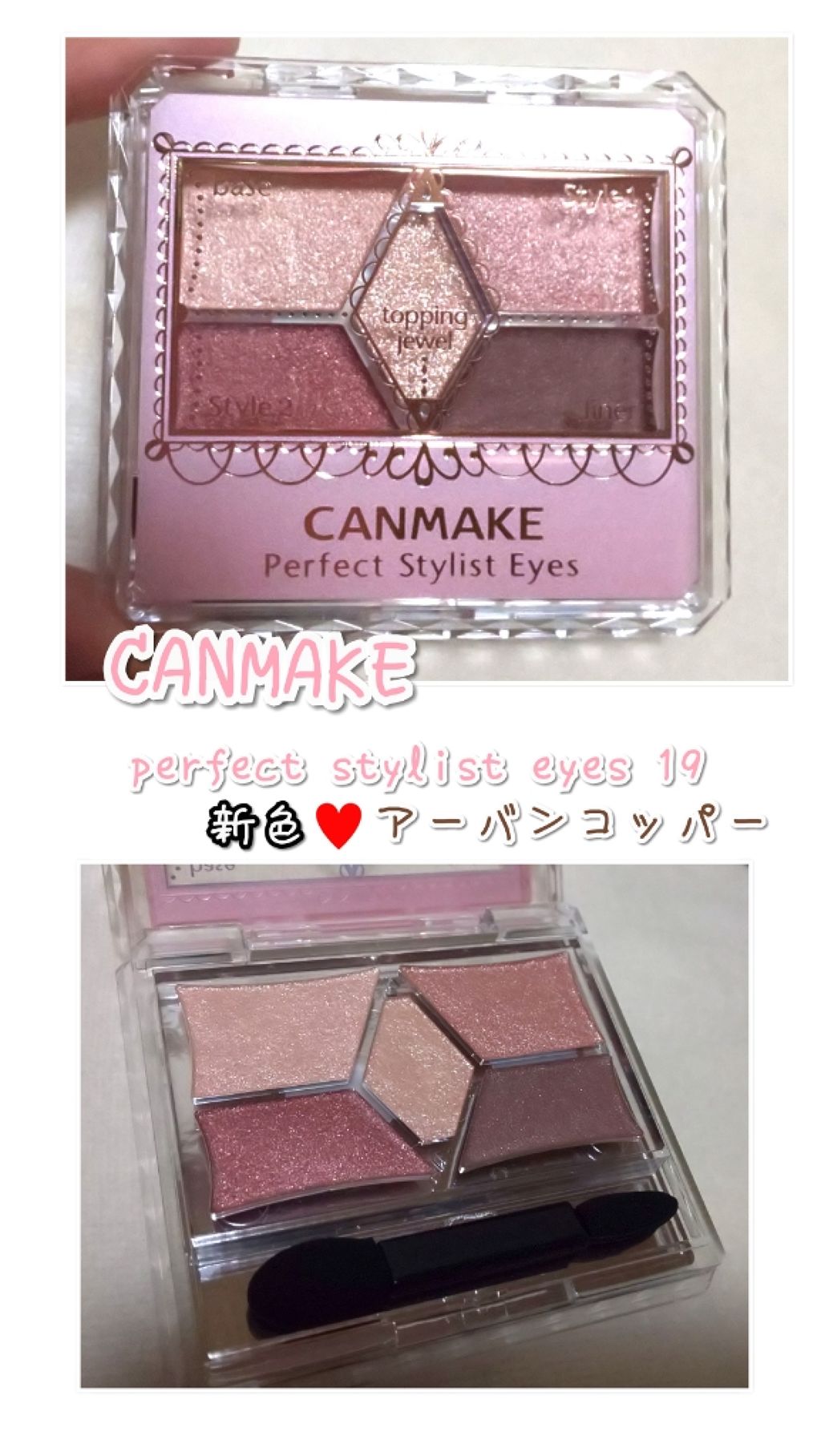 記録用<カラコン>MOLAK1monthダズルベージュ<アイシャドウ>キャンメイクパーフェクトスタイリストアイズNo.19アーバンコッパー(左上の色のみ)CLIOプロシングルシャドウG10...