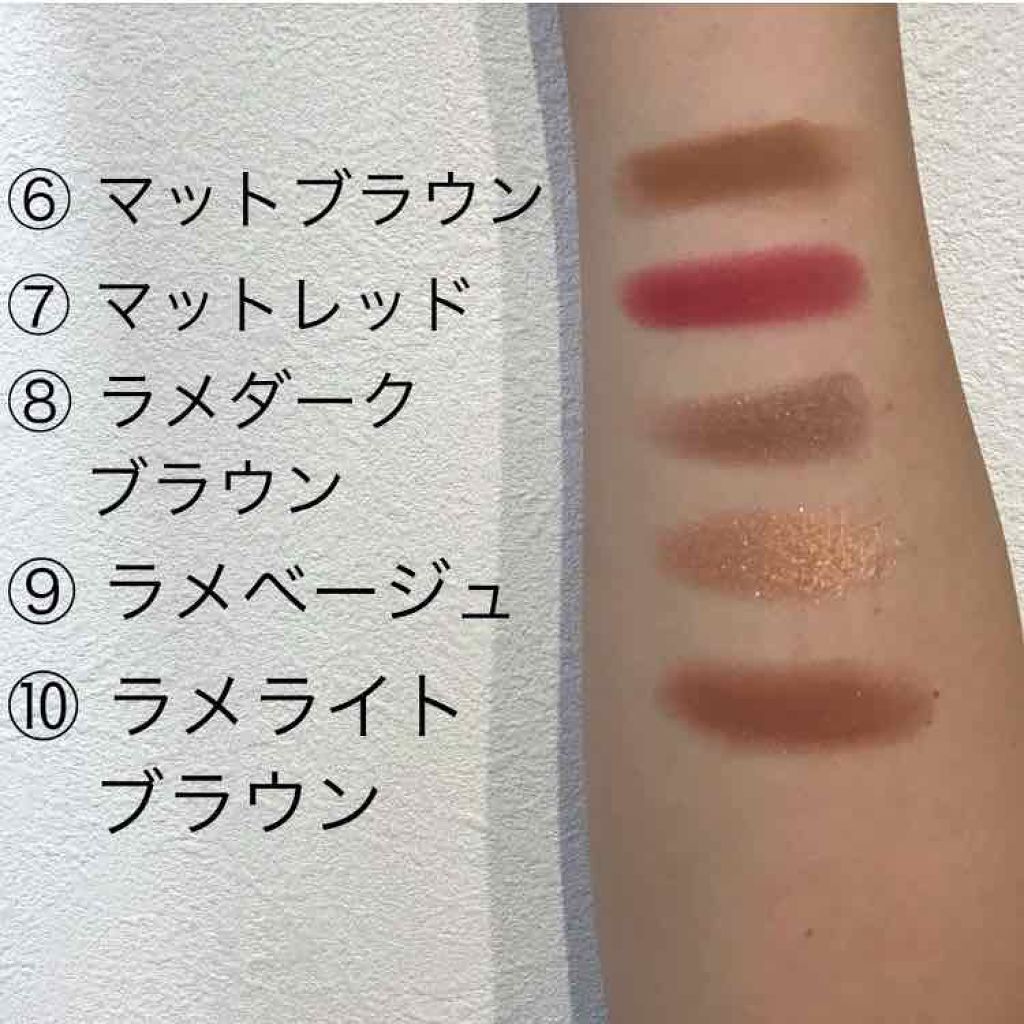 rom&nd さんのベターザンパレット 02 マホガニーガーデンです! 色んな色味がある中で私が購入したのが02番のマホガニーガーデンになるんですが茶色が多いアイシャドウになってますね。 全10色ありますが、上の段の4色はラメ入りあとは茶色の薄い色から濃ゆい色までという感じになります。 上の段の左から2番目のラメが大きいラメで可愛いんです!!! rom&ndのベターザンパレットのパッケージも私は気に入っていて蓋の部分は透明でrom&ndも文字だけ入っていてシンプルでポーチにも入れやすいコンパクトです。