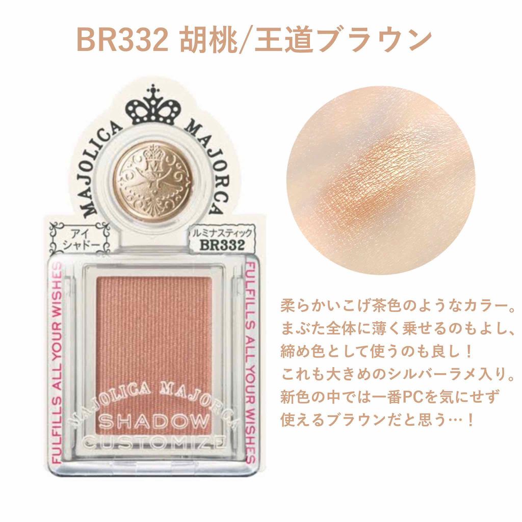 🌷MAJOLICAMAJORCA マジョリカマジョルカ シャドーカスタマイズ *BR332胡桃思いのままにカスタムできるまばゆく発色フォルム整形シャドウ鮮やかな発色で吸い込まれそうな奥行きのある目もとに⚪︎BR332胡桃 シルバーパール輝く ...
