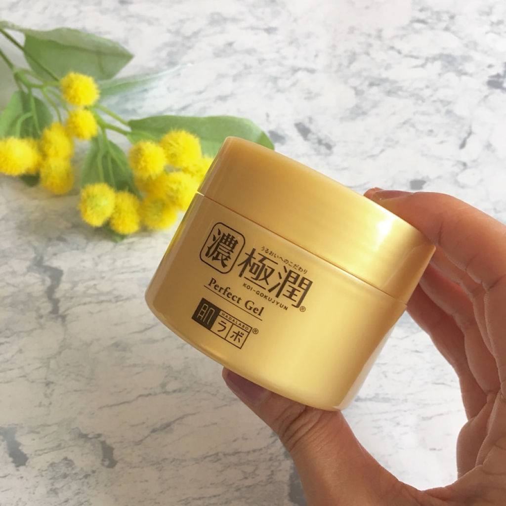 極潤シリーズは安定の高保湿なのよ 【肌ラボ極潤パーフェクトゲル】 こちらのテクスチャはこっくりとさっぱりの間くらいです。ベタつきも少なく、もっちりと保湿されています。 オールインワンなのでとても便利で、忙しいときに大助かりです。