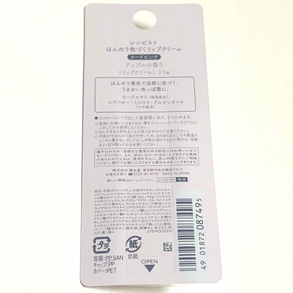 商品詳細情報レシピスト ほんのり色づくリップクリーム