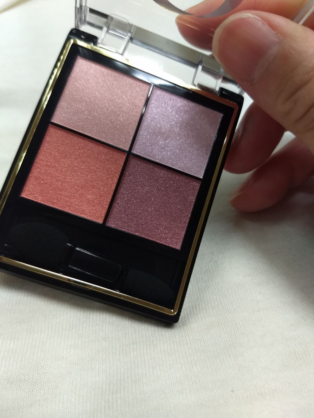 - 1.重ねてもくすまないクリアな発色。ナチュラルに溶け合う絶妙4カラー。 ツヤタイプ(左上・左下カラー):アイホール全体にぼかしたり、目尻へのポイント使いも。 ラメタイプ(右上カラー):アイホール中心や下まぶたにきらめきのアクセント。 マットタイプ(右下カラー):単色で陰影を付けたり、ツヤタイプと重ねてニュアンスをプラス。 2.うっとりするほどリッチな質感で粉飛びしないのに、軽いタッチで伸びて重ねやすいテクスチャー。 3.スクワラン(保湿)配合で目元の乾燥を防ぎます。 [PERFORMANCE] 色と質感の重ね着を楽しむ、ファッション感覚アイシャドウパレット [DESIGN] ・まぶたにひっかからない、なめらかな上質チップ ・薄型コンパクトだからポーチの中でかさばらない [QUALITY] 1.重ねてもくすまないクリアな発色 ナチュラルに溶け合う絶妙4カラー 2.パールの重ね技でまぶたに極上のツヤ感 微細多色 カラーパール 銀コーティング ガラスパール* excel GOLD-MIX処方(金パール配合)* (*右上のシャイニーカラーのみ) 3.うっとりするほどリッチな質感で粉飛び知らず!なのに、軽いタッチで伸びて重ねやすい 4.スクワラン(保湿)配合で目元の乾燥を防ぐ