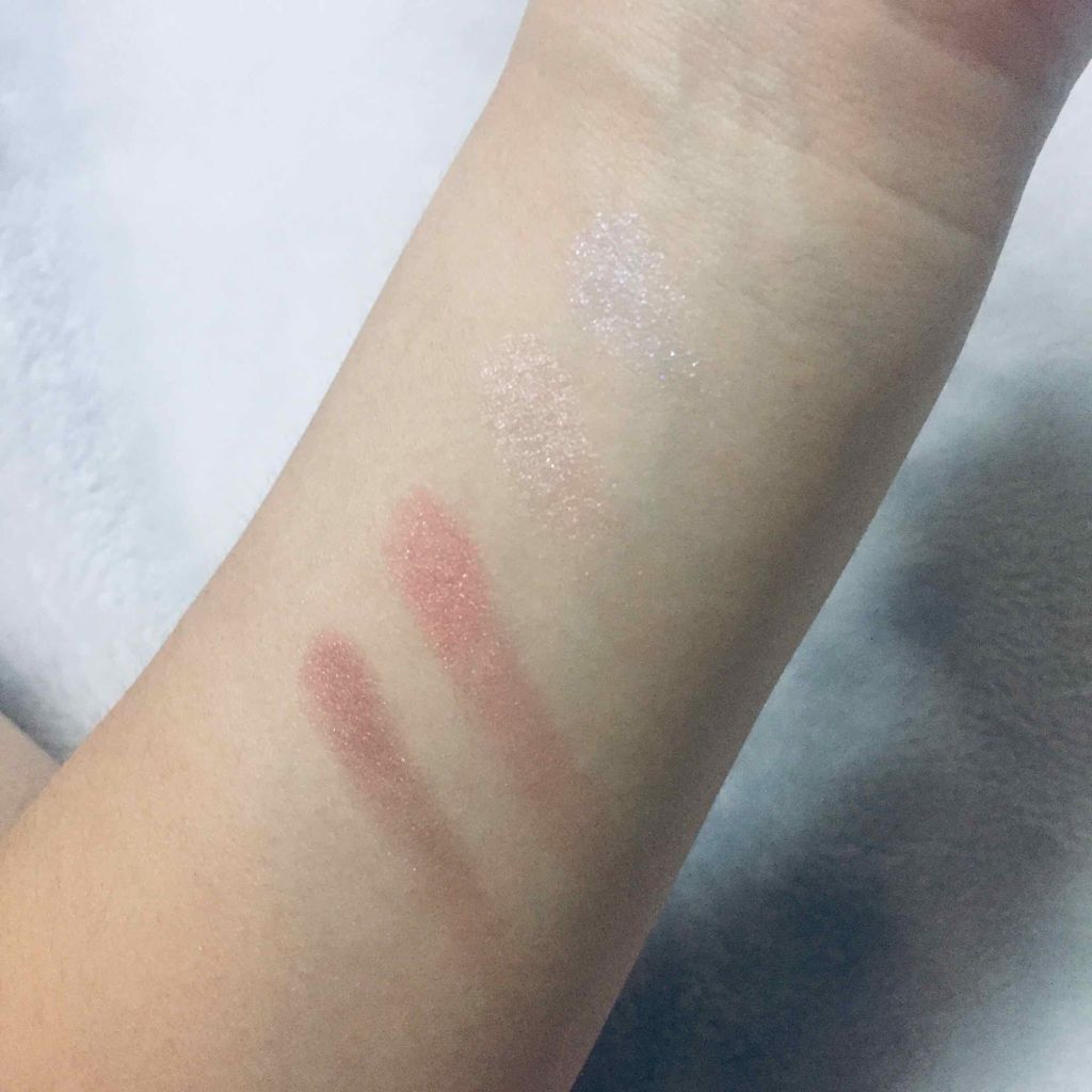 オレンジを感じる薄いピンク 薄いピンクに少しパープル感 使うお色によってブルベさんもイエベさんもどちらもOKだと思いまます。 右上の少しパープルが入っているピンクが可愛い♡ 涙袋にもピッタリです♡