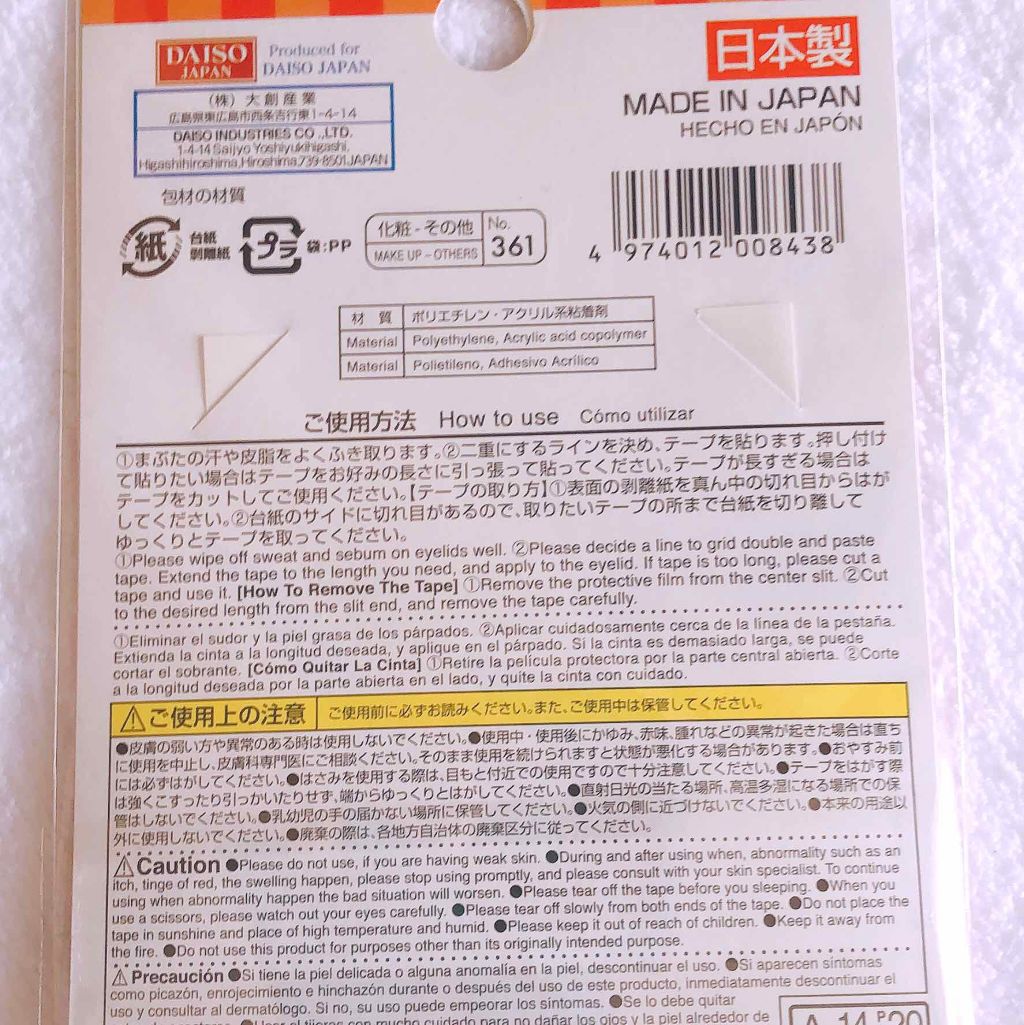 | メイクアップグッズランキング第124位 | 引っ張って二重瞼につけて端をハサミで切る!しっかりまぶたにくっつくし、その上から化粧しても粘着落ちたりしなかったから良き!! | 詳細を見る | |