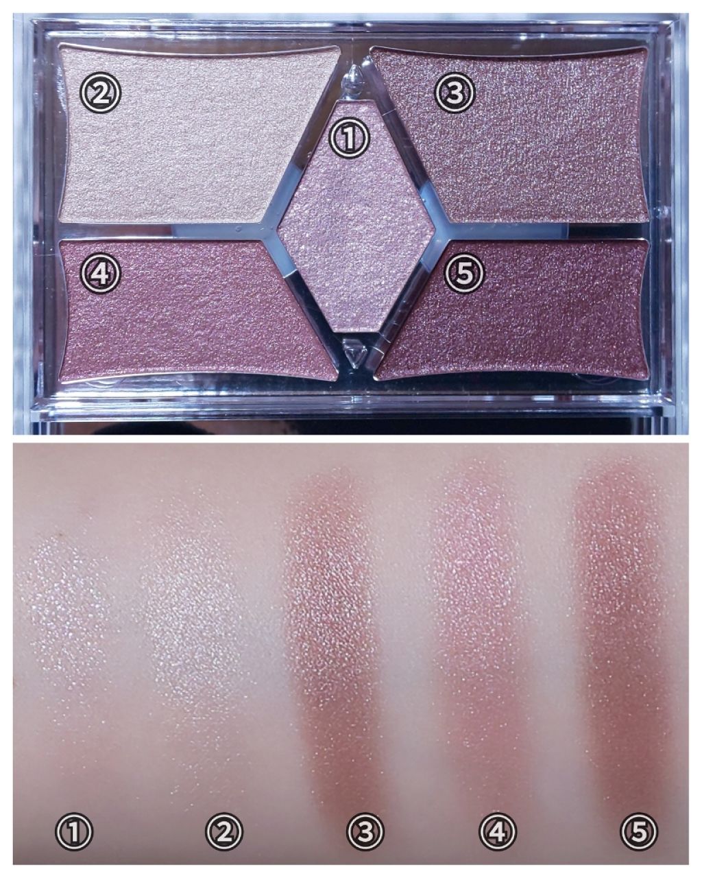 - ラメ・パールは控えめ、しっとり密着して高発色の5色アイシャドウ。1色は上からトッピングできるラメパウダー。ナチュラルスタイルと華やかスタイルを2パターン楽しめるカラーバリエーションです。