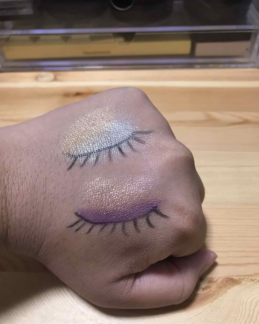 ブルベの冬メイクにぴったりなパープルパレット! ルナソルらしいシアーで透明感のある発色だから比較的ダークめのパープルでも扱いやすかった◎ まず左上!定番のNにはなかった、ギラッギララメ!! これぞルナソルだー!って感じしません🥹? 意外と使えるのは瞼の色味を整えてくれるベージュ! これ結構使い道どうなの?って思うかもだけど発色はしなくていいんだよね。