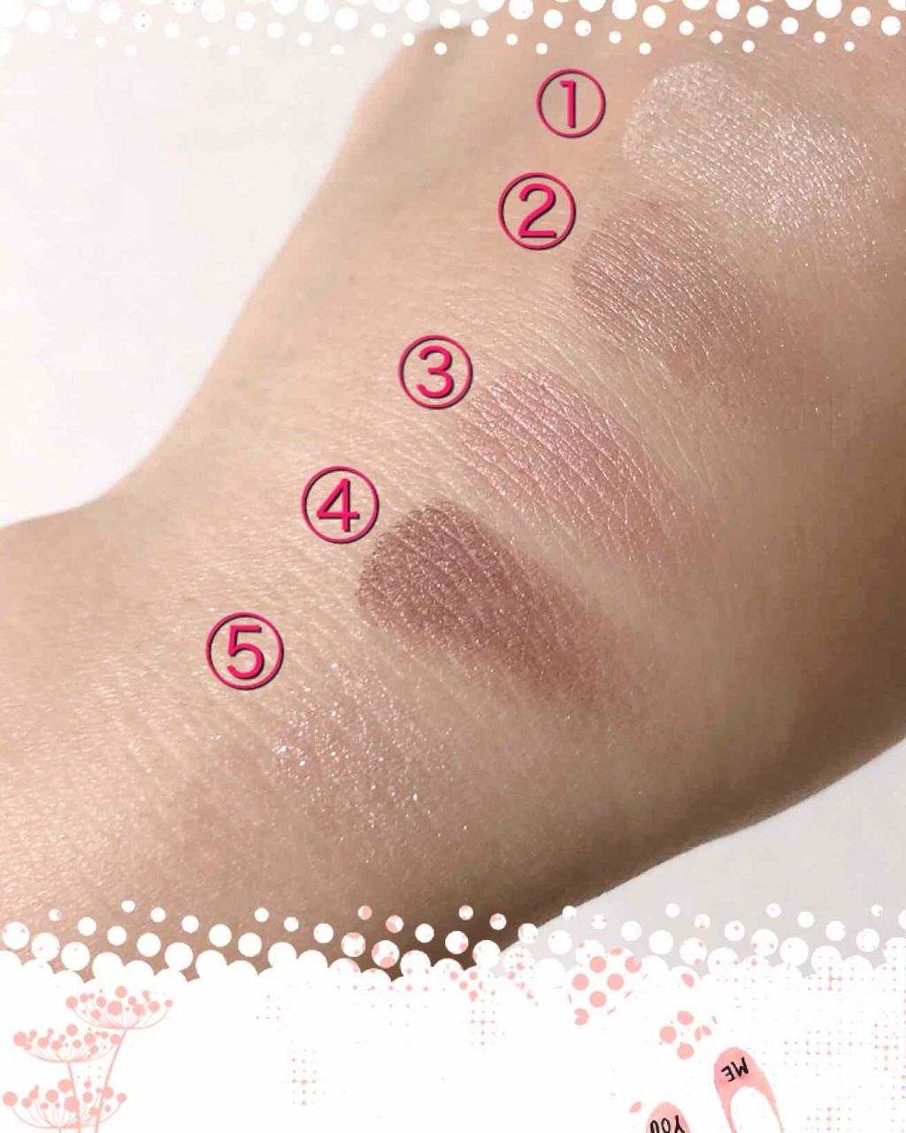 深みのあるくすみ系カラーが魅力の5色入りアイシャドウパレット。1つで2つの異なるメイクスタイルを楽しめるのが特徴で、スモーキーで落ち着いたトーンの色味が揃っています。 ラメは華やかだけど控えめで、普段使いにも特別な場面にも合わせやすいです。 粉質はしっとりしていてまぶたに密着しやすいです。プチプラながら発色も良く、コスパの高さがとにかく嬉しい♪