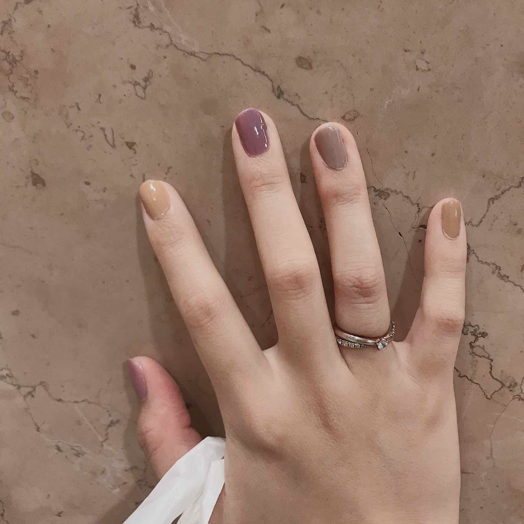 ...秋の塗っただけネイル💅🏼..Ducatoは乾きは遅いけど、お色はかわいい☺️ちなみに彼にも褒められました︎︎︎︎︎☺︎...#ネイル#秋ネイル#シンプルネイル#大人かわいい.お色は、ライラックスカイクリームマロンShhh!...