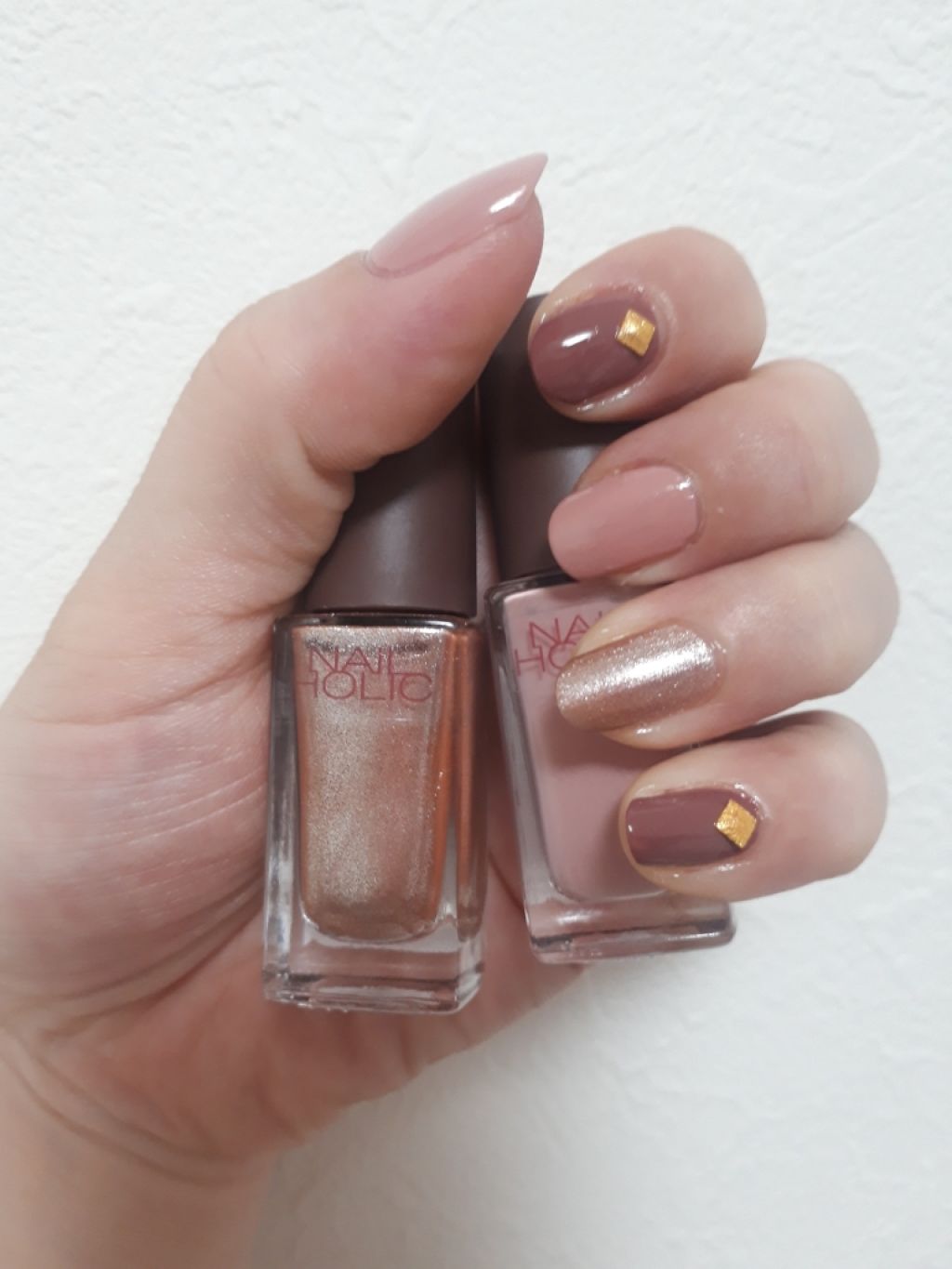 可愛いソフトモカカラーとゴールドがおすすめすぎます☕️🦢秋らしさ抜群なブラウンネイルをご紹介します🧸⸝⋆★✩✯✮✰✪☽✧✶NAILHOLICマニキュア NostalgicColorBR324一度塗りでも発色バツグンなブラウンカラーは、ほのかに...