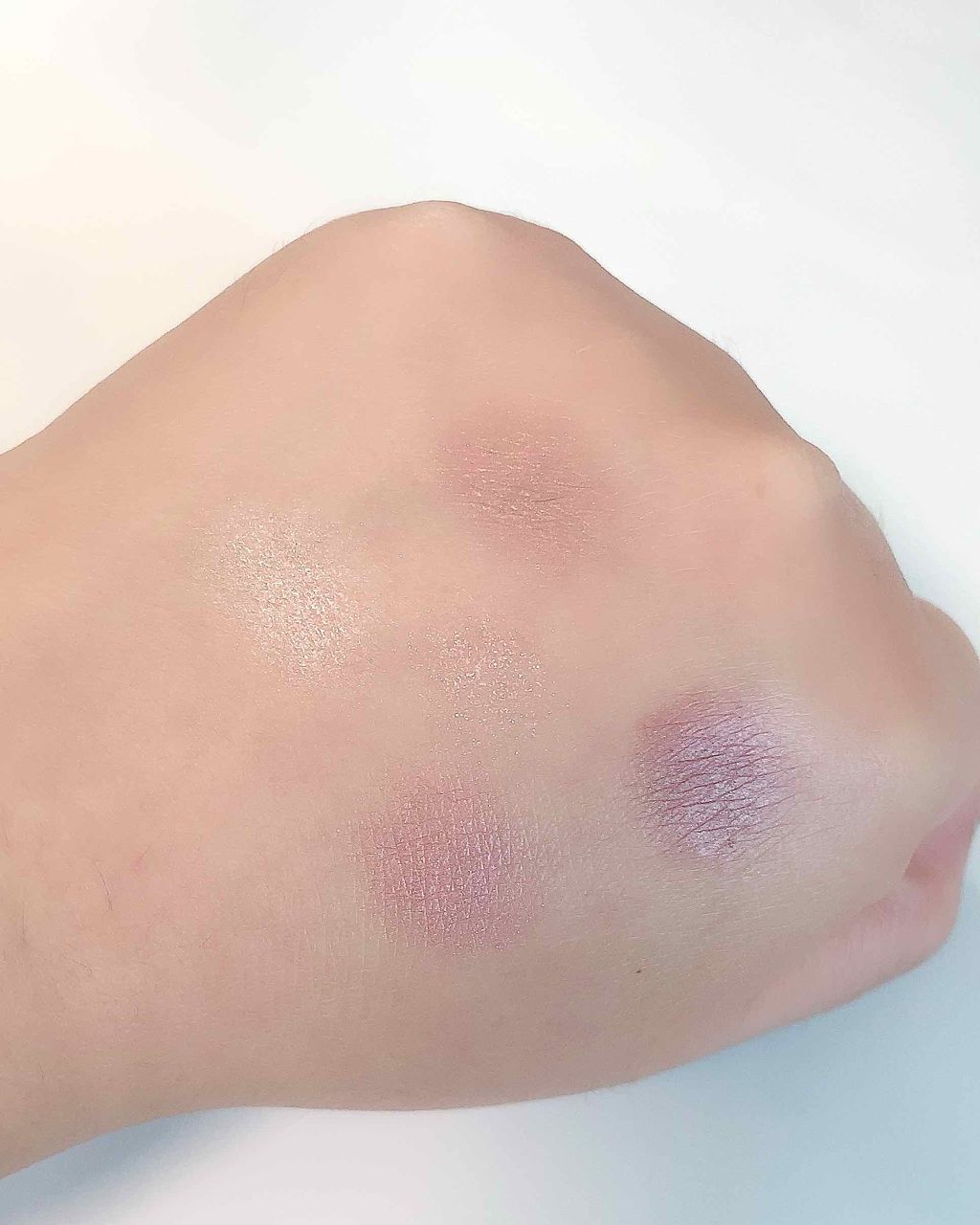 深みのあるくすみ系カラーが魅力の5色入りアイシャドウパレット。1つで2つの異なるメイクスタイルを楽しめるのが特徴で、スモーキーで落ち着いたトーンの色味が揃っています。 ラメは華やかだけど控えめで、普段使いにも特別な場面にも合わせやすいです。 粉質はしっとりしていてまぶたに密着しやすいです。プチプラながら発色も良く、コスパの高さがとにかく嬉しい♪