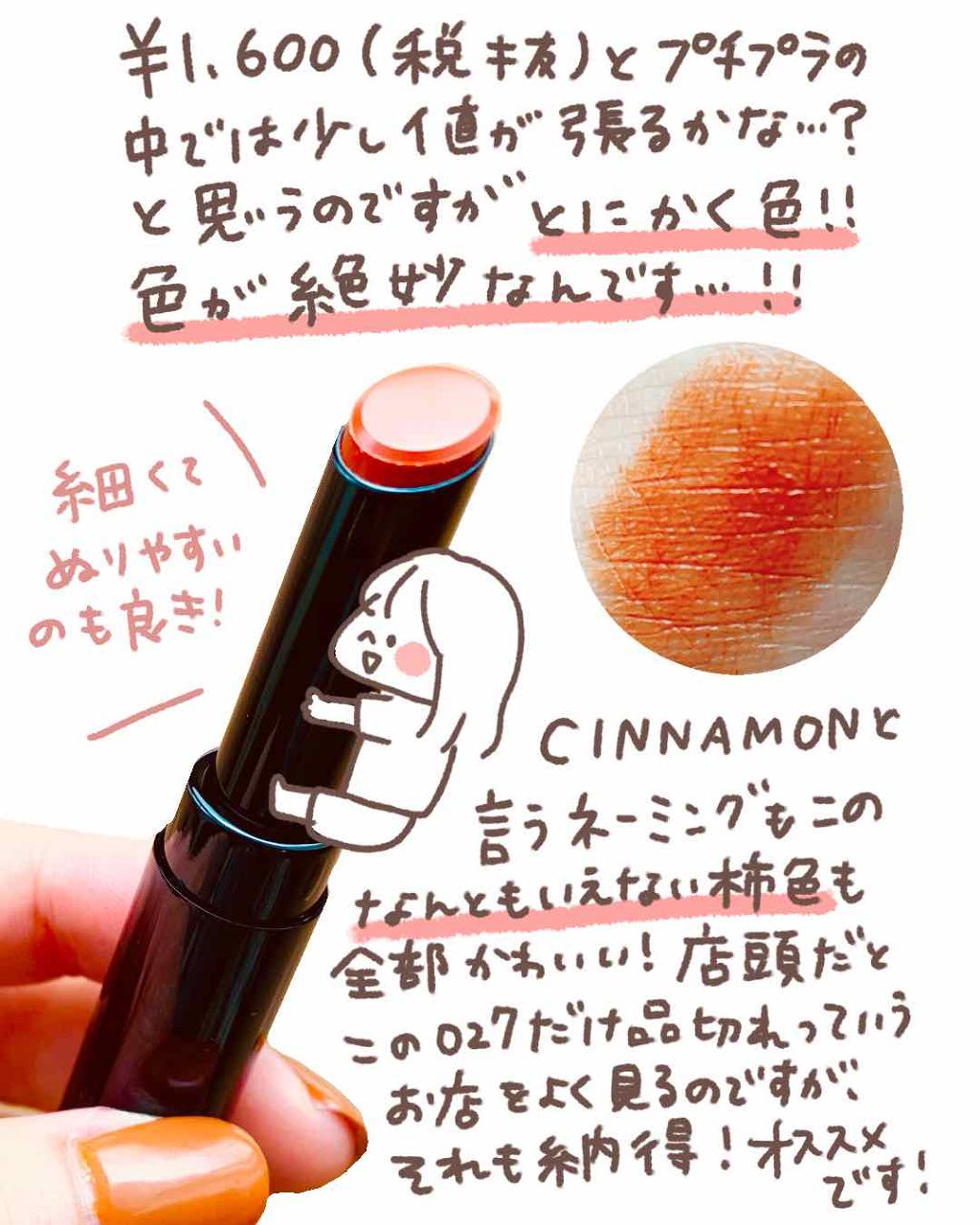 | 口紅・グロス・リップライナーランキング第34位 | ササっと塗ればシアーだし、2、3度 重ね塗りするとちゃんと色付きます。 | 詳細を見る |