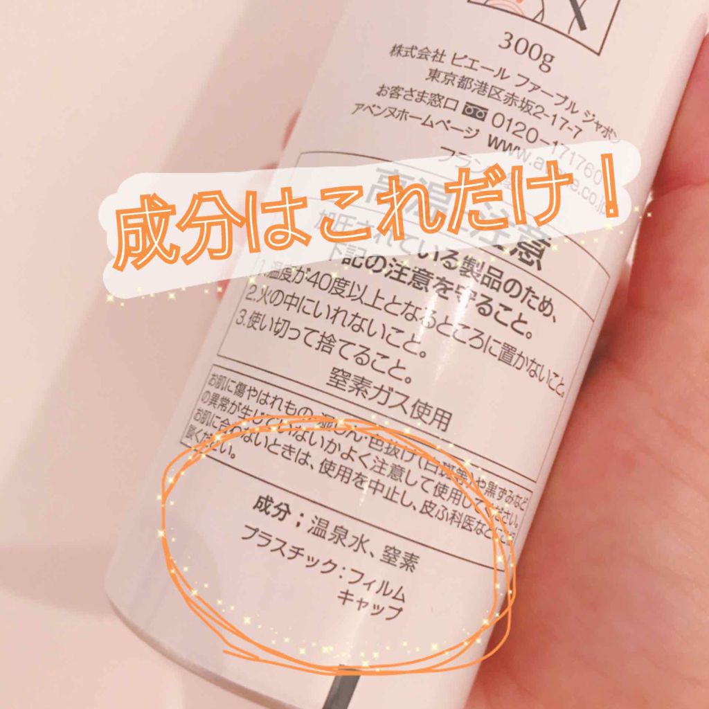 温泉水でお肌の深呼吸朝、顔洗ってすぐにシューッ。仕事帰りで肌カピカピな時にもシューッ。隙あらばシューッ。細かいミストだから涼しくてほどよく潤って気持ち良き🌊肌に良いことしてるな〜って思える><アベンヌ ウオーター 300g南フランスの温泉水1...