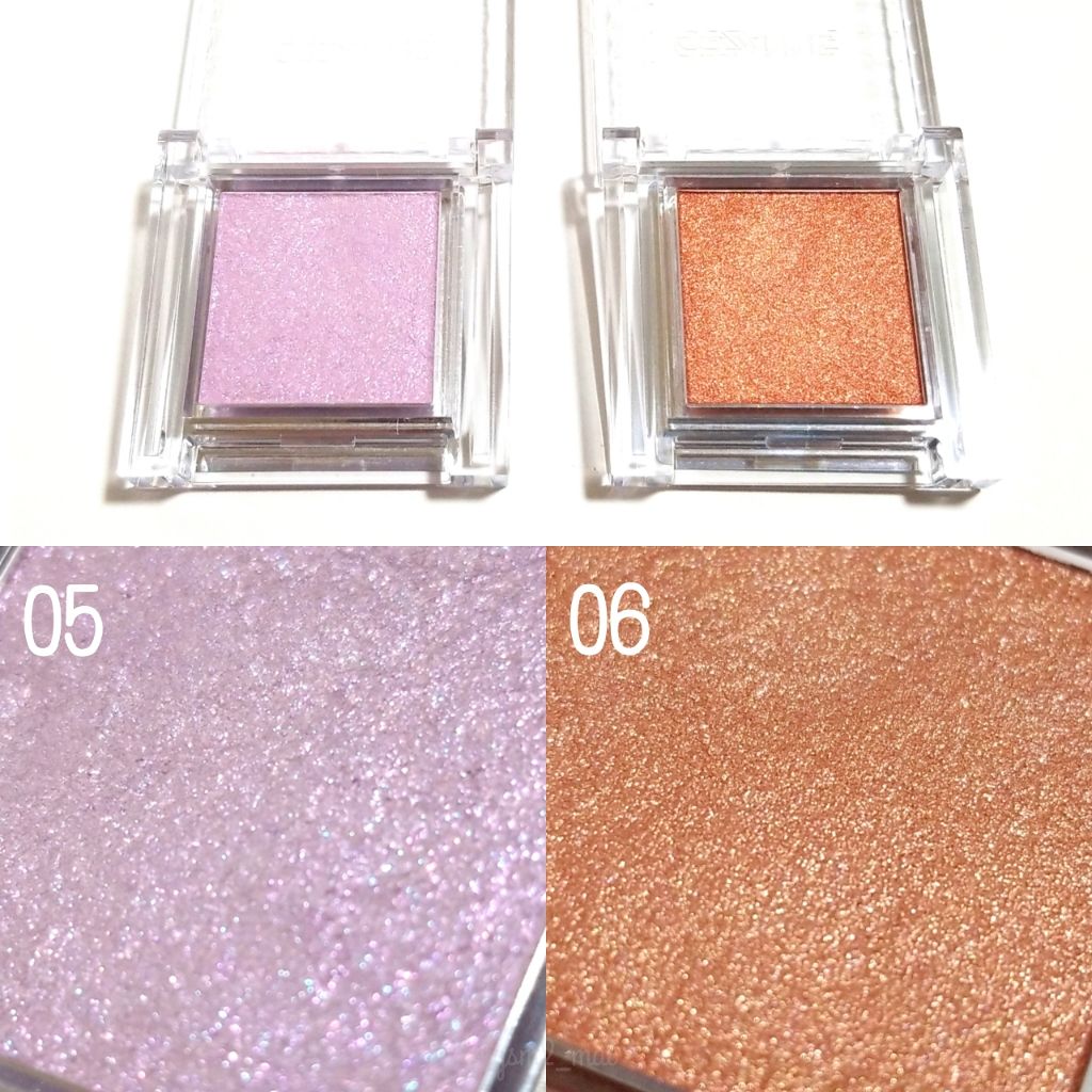 全色ラメがかわいくて、シングルカラーアイシャドウのピュアラベンダーはもう廃盤なんだけど、青み+ラメ足しにもちょうどいい! シングルシャイニーアイシャドウはどちらも涙袋におすすめ!