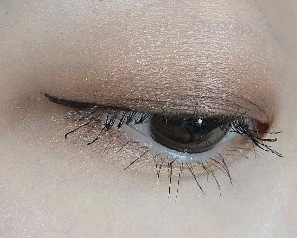 アイベースを使わなくてもきちんと密着してくれて崩れたり、二重線に溜まることもなく使えます! 塗り心地はスルスルぬれて、ベタつきが少ない印象でした。 高発色でラメも少し入っているので繊細に煌めきます。