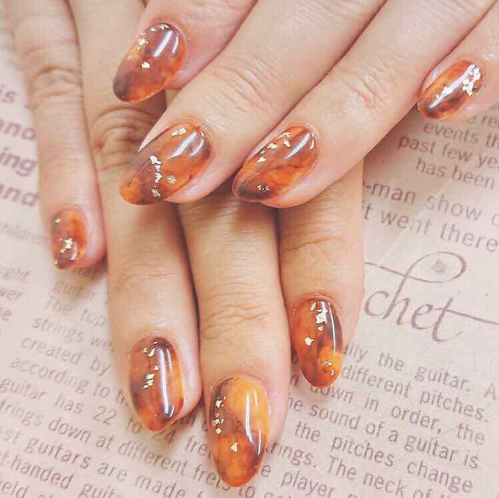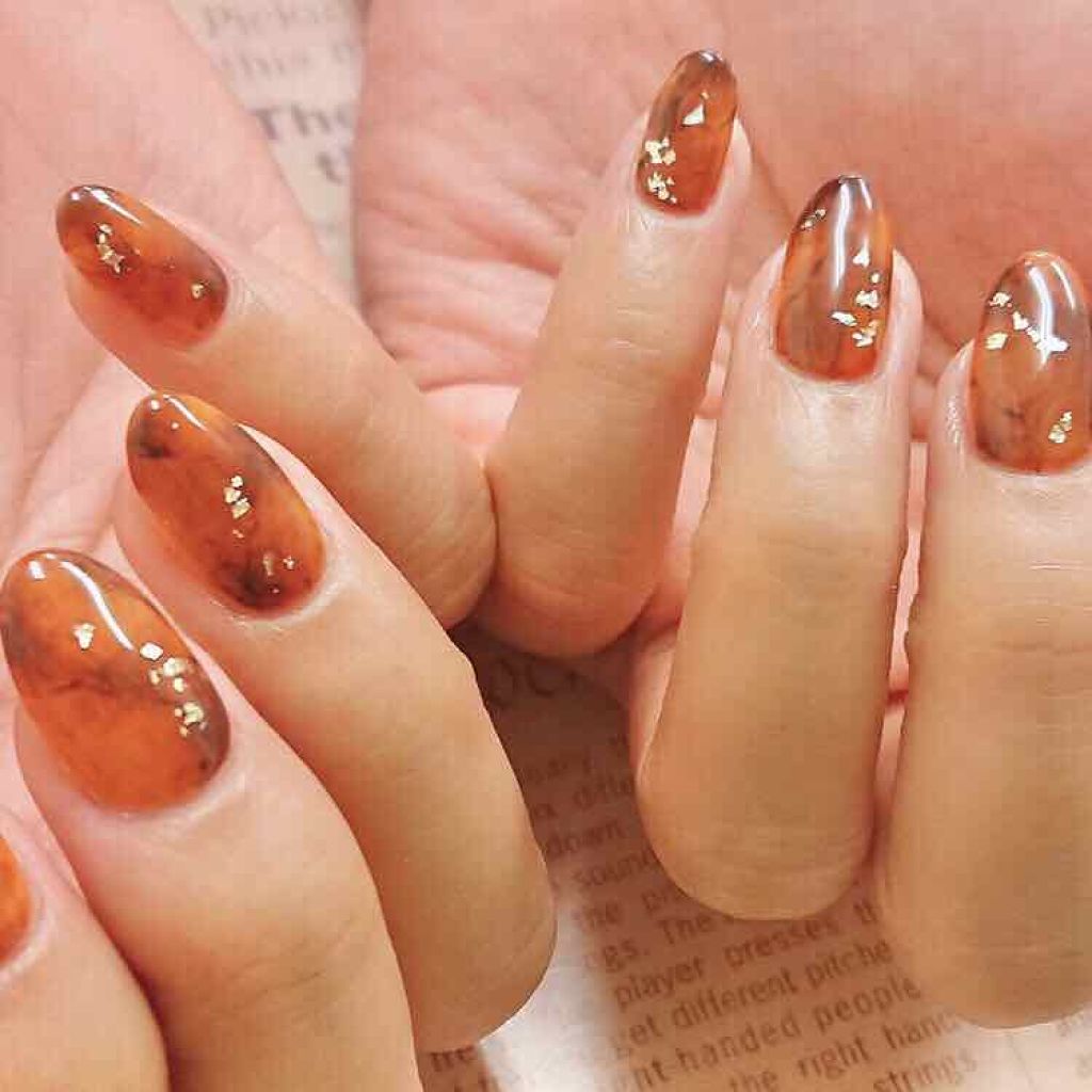 鼈甲部分はキャンドゥの3色とゴールドの箔を使用しました♡ ストーンはSHEINのものを使用。 ▶︎キャンドゥ Parkikoi カラージェル ・クリアブラック ・キャラメルブラウン ・ガーネットブラウン