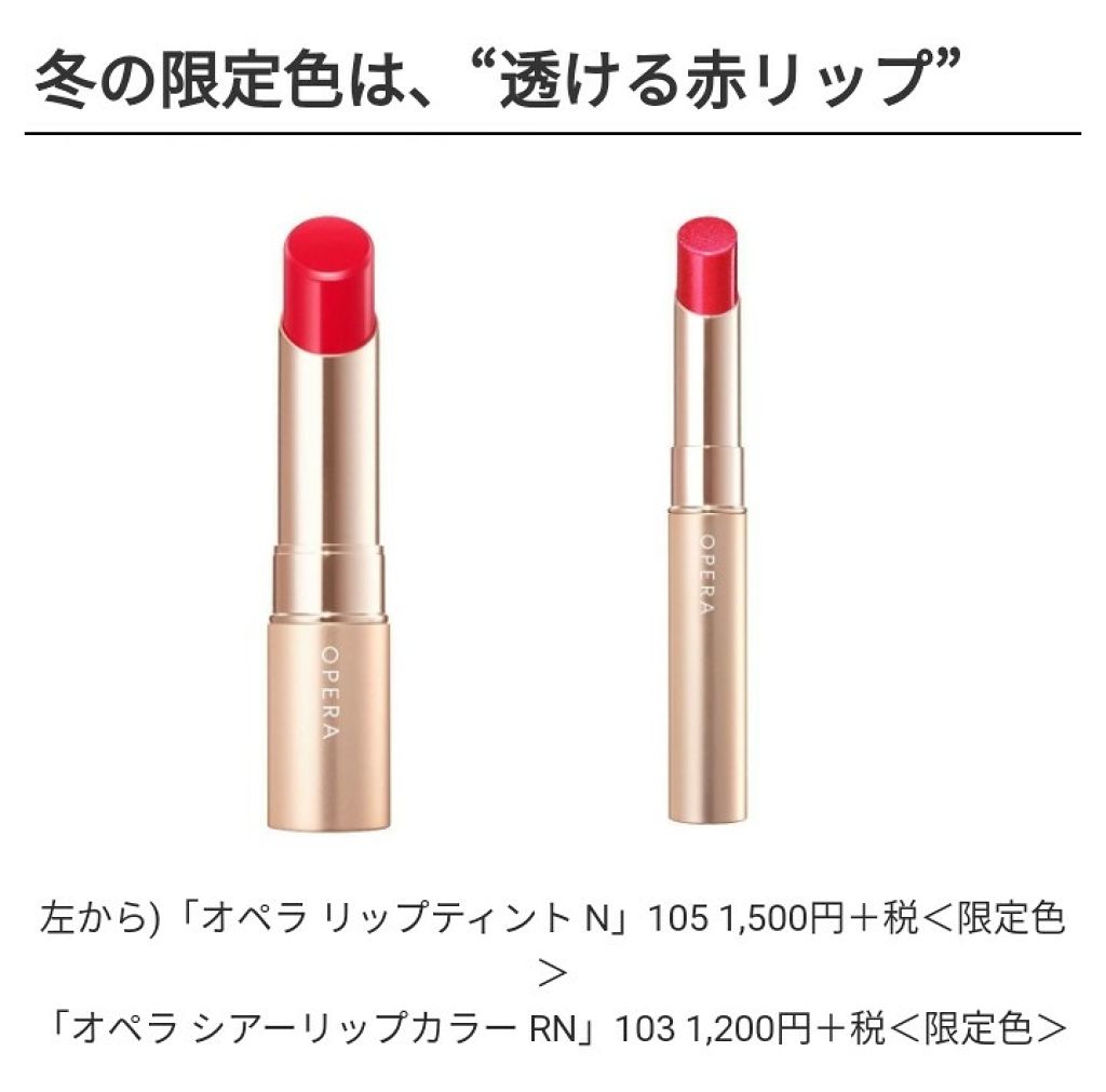 OPERAオペラリップティントN06ピンクレッド復刻新色【色】◎色めっちゃいい。赤くなりすぎず程よくピンクが中和してパキッとならないからいろんなメイクや服に合うと思う。【唇との相性】△私には相変わらず保湿必須。【コスパ】◯¥1,760一般的な...