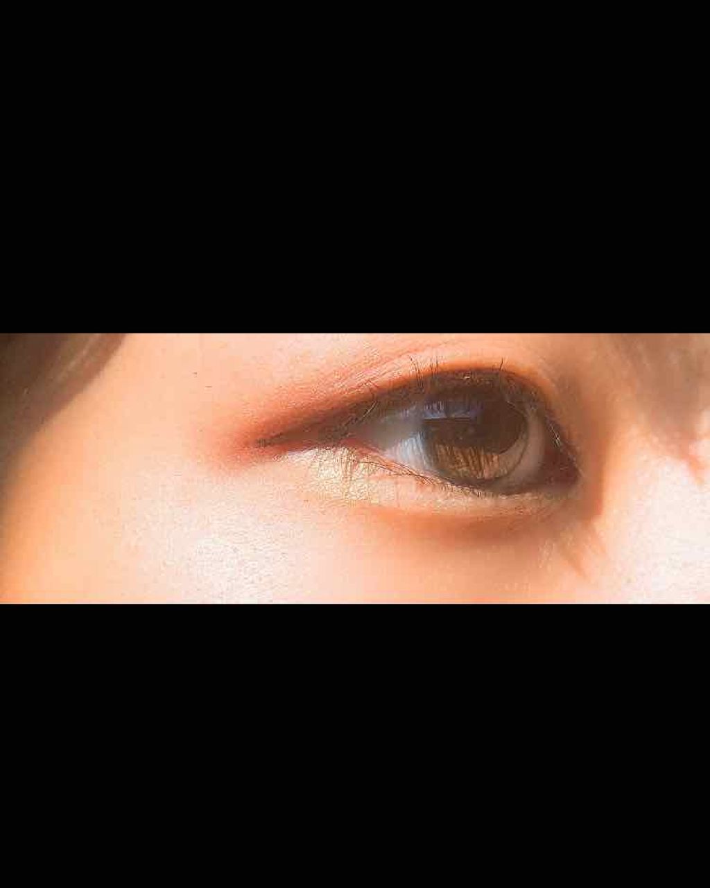眼瞼下垂手術の後、はじめて使ったアイシャドウ。保険適用でしたので奥二重に仕上がりました。それもあって、目尻にアイライン状に赤を入れることで、切開跡の赤みを誤魔化していました。奥二重だと、目を開けている時、切開跡とアイラインとがとても近いのです...