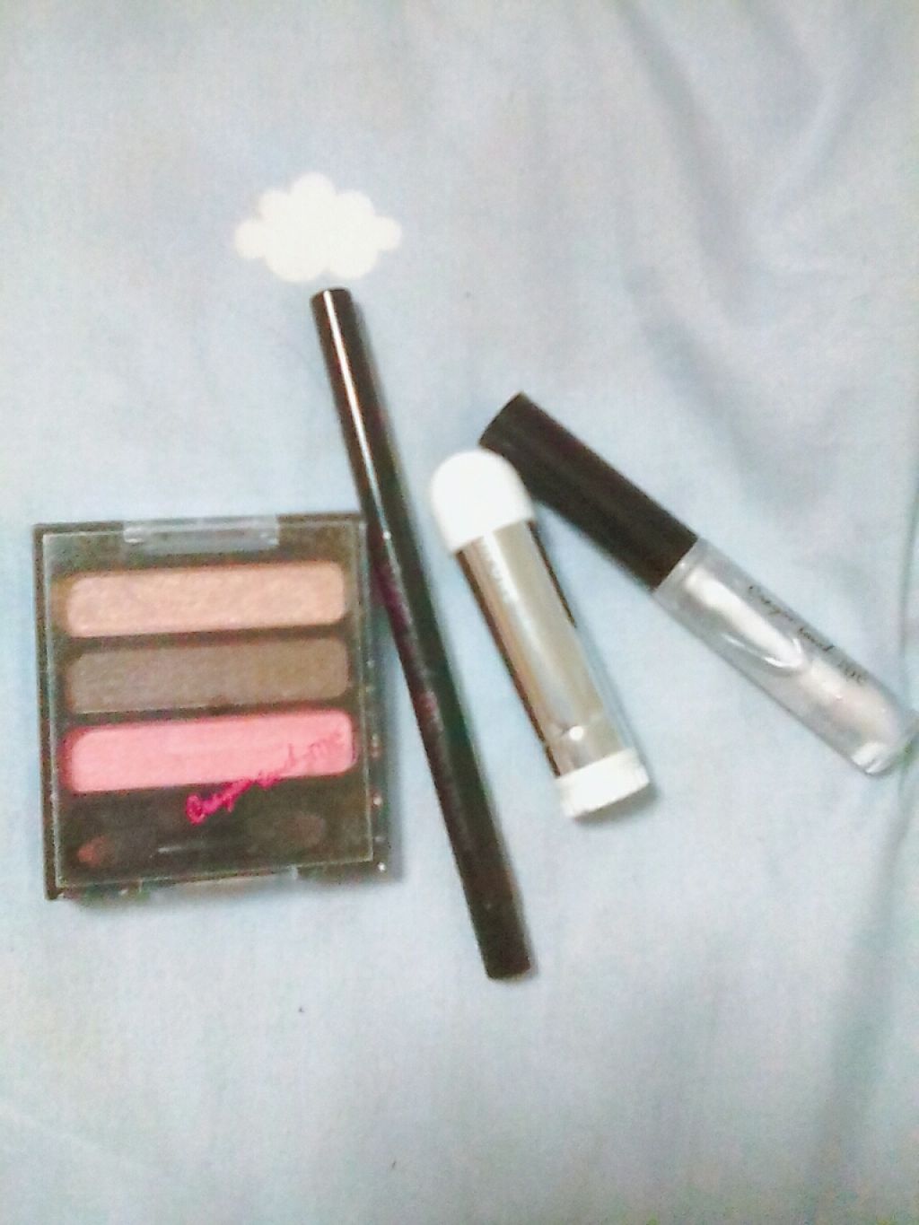 アイシャドウは薄づきです!リップは発色がいいです塗りやすい大人っぽい色です!アイライナーは黒なんですけど目頭のところでアイシャドウの真ん中の濃い茶色を二重幅に塗り、アイホール全体に上の薄い茶色をのせました!そして涙ぶくろに下のピンク色をのせて...