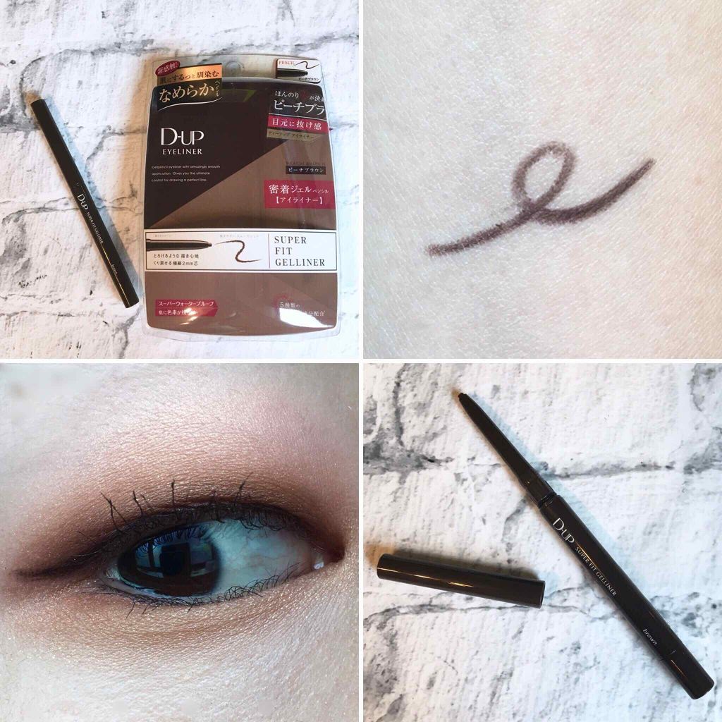 するする書ける繰り出しタイプのジェルライナーです 使用感はとてもよく、落ちにくくてさすがD-UPと思いました! 色味はピーチブラウンなのですが、ほんのり赤みを感じるかなという感じで、結構ブラウンブラック寄りで、ピーチ感は感じませんでした。