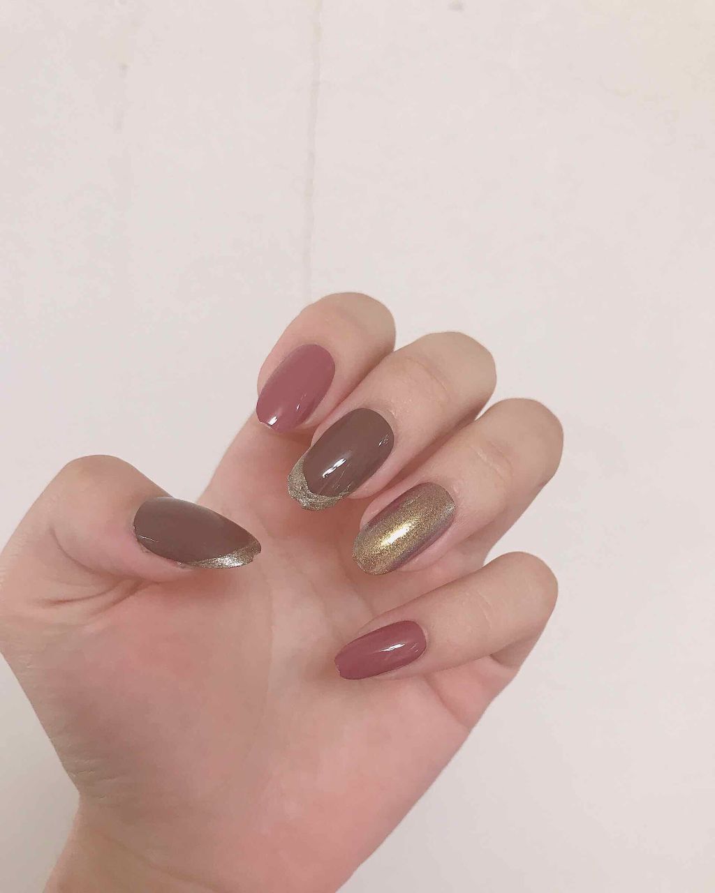 DAISOポリッシュだけで出来る💙鉱石風なおしゃれニュアンス💅Howtoは3枚目に😘ちなみにぼかしに使ったベースコートもGENEネイルです🙌🏻人差し指と小指はグレージュブルーを2度塗りして爪先にゴールドカラーを重ね塗りしました✨少しでも参考に...