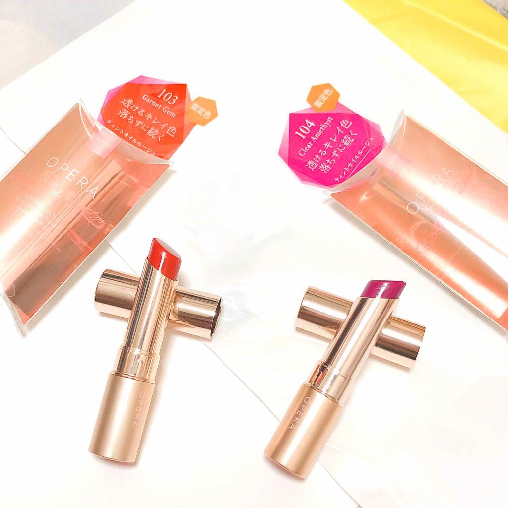 オペラリップティントN105ルーセントレッド¥1500+税シアーリップカラーRN103スパークルレッド¥1200+税11/28当日にロフトが近くになかったのでハンズに行って速攻で買ってきました😍お金ない貧乏大学生ですがリップティントNとシアー...