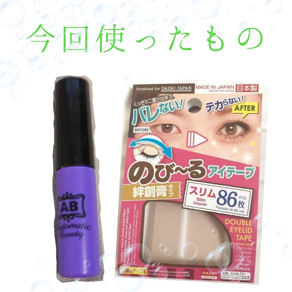 | 引っ張って二重瞼につけて端をハサミで切る!しっかりまぶたにくっつくし、その上から化粧しても粘着落ちたりしなかったから良き!! | 詳細を見る | ||