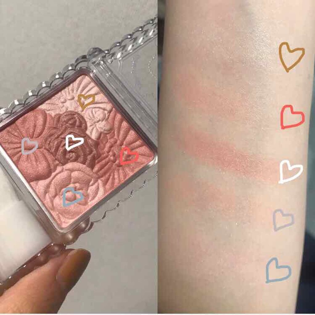 見た目がハート型で可愛いのに 粉質はしっとり付属のブラシもチクチクせず塗布できて660円はすごい🌸 透け感のあるツヤ仕上がりで P04はハイライトとして使うのも◎ 全部色味の違うピンクカラーでその日の気分やメイクに合わせて使い分けてる🌷