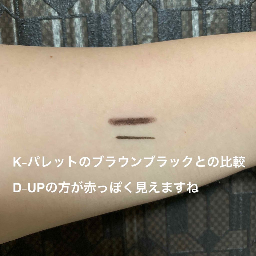 するする書ける繰り出しタイプのジェルライナーです 使用感はとてもよく、落ちにくくてさすがD-UPと思いました! 色味はピーチブラウンなのですが、ほんのり赤みを感じるかなという感じで、結構ブラウンブラック寄りで、ピーチ感は感じませんでした。