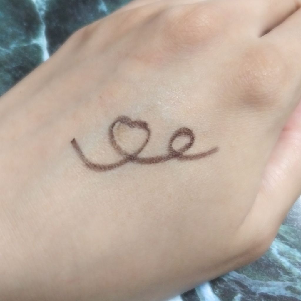 するする書ける繰り出しタイプのジェルライナーです 使用感はとてもよく、落ちにくくてさすがD-UPと思いました! 色味はピーチブラウンなのですが、ほんのり赤みを感じるかなという感じで、結構ブラウンブラック寄りで、ピーチ感は感じませんでした。