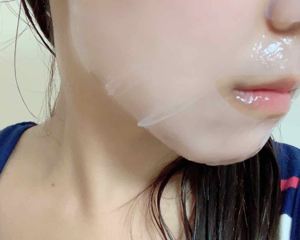 | シワも出来ずにぴたーっと密着。顔との一体感がすごい!そして液がヒタヒタなのに垂れてこない! | 詳細を見る | ||