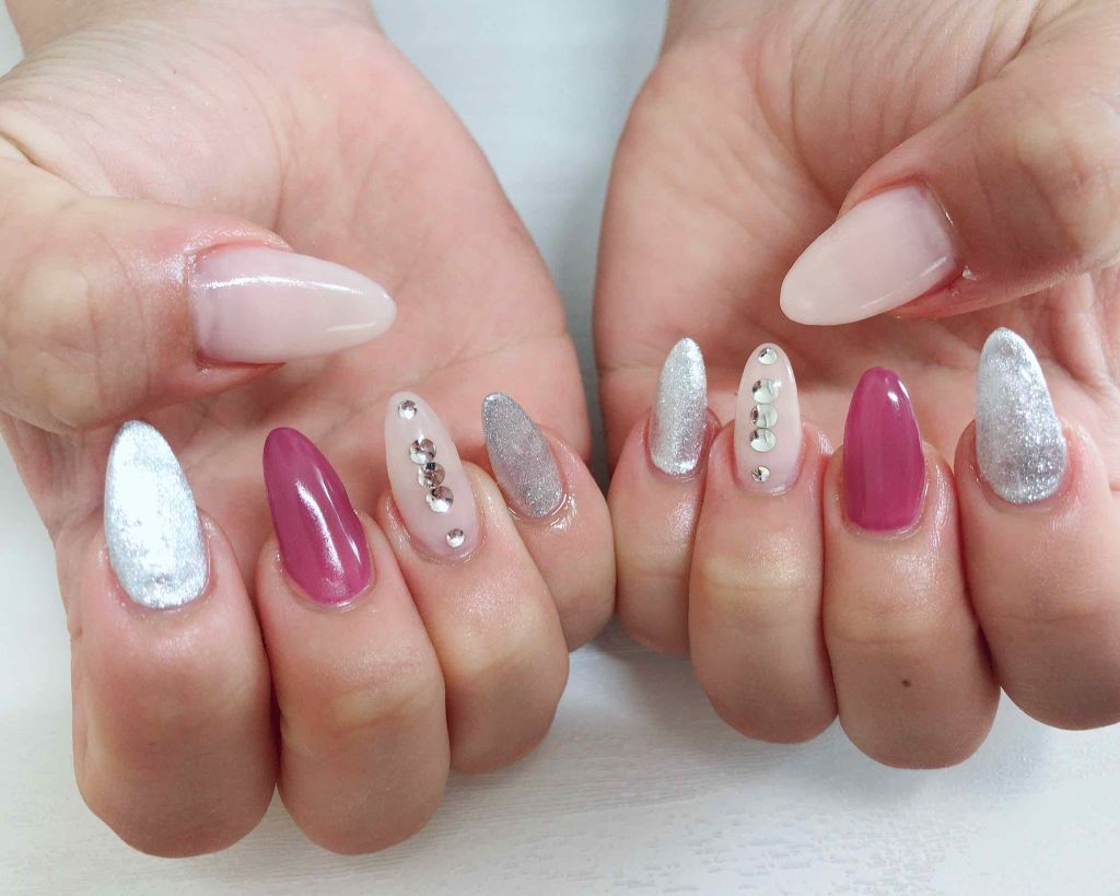 シルバーとパープルピンクが相性すごくよきなネイル🤤❤️❤️ちなみにシルバーだけマット仕様に💓1本だけストーンをおいてさりげなくきらきら💗💗ラメをマットにするのもすごくかわいいですよ〜🐣💕#シンプル秋ネイル#秋ネイル#マットネイル#ネイルデザイ...