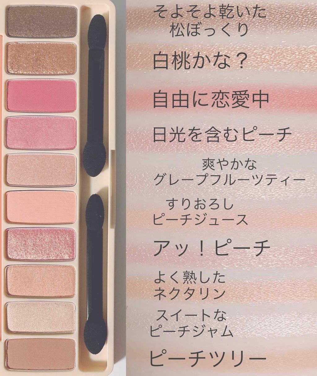 - 肌なじみの良い、鮮やかな発色で目元を華やかに彩る捨て色なしの10色アイシャドウパレット 異なる3種のテクスチャーを自由に組み合わせて、グラデーションも思いのままに。 NEW 2023.4 ・肌トーンにあう配色を詰め込んだトレンドカラー 肌トーンに合わせて、自分に似合うトレンドカラーが楽しめる♡ パーソナルカラー×トレンドカラーの掛け合わせパレットで、デイリーメイクもスペシャルメイクも気分にあわせてなりたい自分に! ・むにゅっとジェル質感ラメで高密着、煌めく目元 パレットの中でもポイントとなる大きめ粒子のラメは、ジェルのような新質感で落ちにくく肌にぴったりと密着します。キラキラとした目元をキープします。 ・使うカラーは大きめに!リアル捨て色なしパレット ベースやラメのよく使うカラーと締め色や濃い色等の減りが少ないカラーを異なるサイズで詰め込んだ、リアル捨て色なしパレット! <使用方法> 付属のデュアルシャドウブラシでベースカラーをまぶた全体に塗り広げます。細いブラシでグラデーションや目尻、アイライン、涙袋などのポイントカラーをのせて仕上げます。