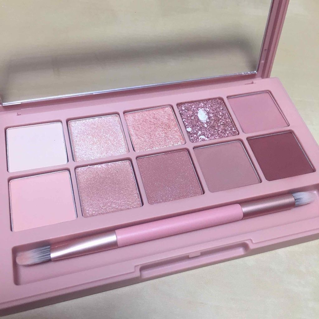 かわいいチャーム付き ピンク&パープルパレット こちらは青みピンクとパープルで構成されたアイシャドウパレットです。 粉質もしっとりしていて 見たまま発色しますしラメも密着感があってよかったです。