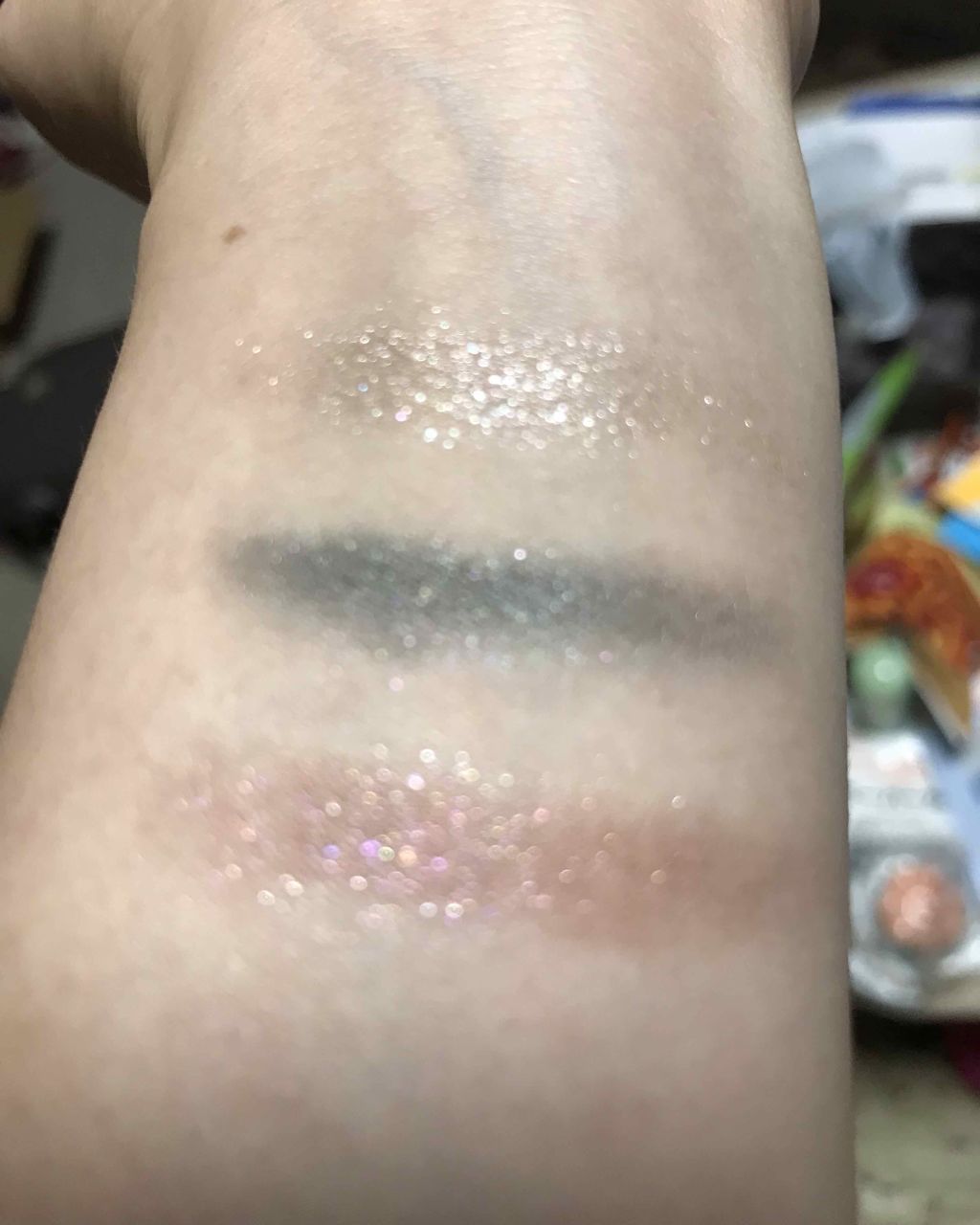 カラポで今回一番お得に買えました☺️ 確か$22が$11で半額だったかなと。(今値段確認したらもう商品が出てこなかった💦) 1番左の中段の抹茶色?カーキ色?がツボだったのと、同じく中段の1番右こ偏光色と、シマーたちが美しかったので😊 カラポって次から次へと新商品出るんですね💦 1つだけだったら、もう少し欲しいのためてから…って思うんですが、それにしても早い😅 カラポのメルマガを購読してるので送信される度にときめいてます苦笑 SSSは我慢出来なくて昨日、今日とアイシャドウだけ使っちゃったので、明日はGoing Coconutsでメイクします☺️