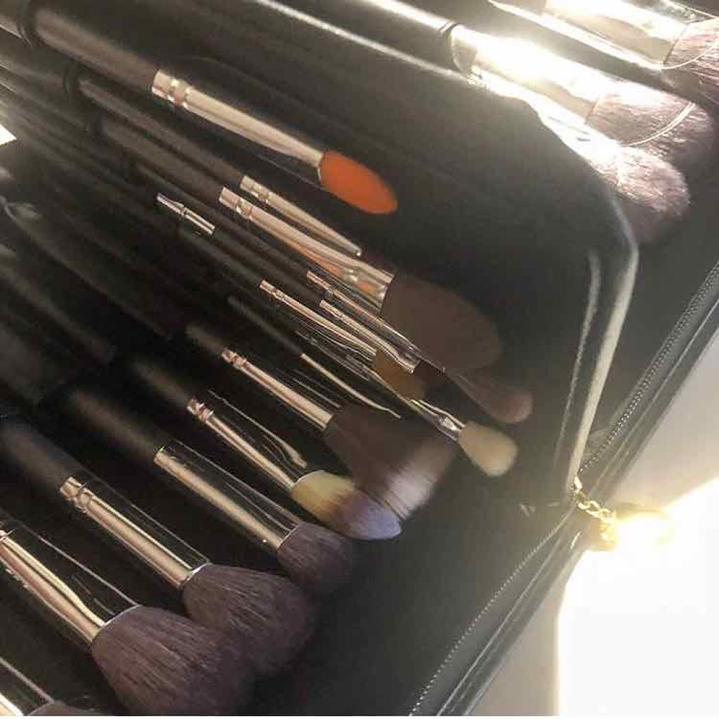 - お化粧に必要な化粧筆をほぼすべて網羅したメイクブラシセット。 3本は高級天然毛(馬)をふんだんに使用。上質なレザー風化粧ポーチ付き。