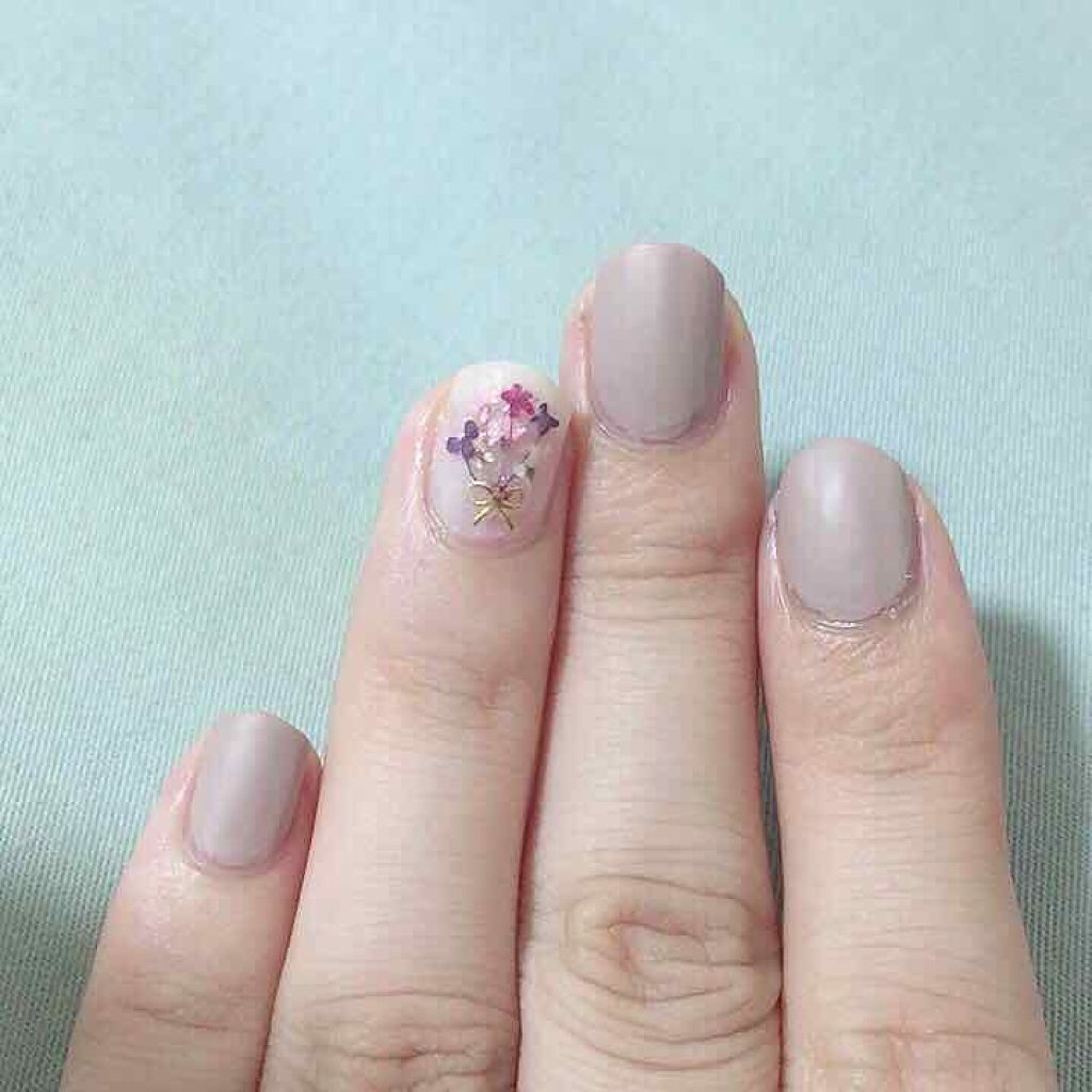 CANMAKEのカラフルネイルズN26をゲットしたのでカーキネイルしてみました!N26は淡い色合いが最高に可愛いです😆💓人差し指はN29を塗った後に100均で買ったドライフラワーを使って囲みネイルにしました!薬指もN29を塗った後に先の方だけ...