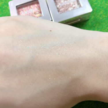 - 宝石パウダー・偏光パールにより、光の当たり方で色合いが変わるグリッターアイシャドウ。ババス油、ザクロ種子油、ホホバ種子油配合で、粉飛びしにくくまぶたにしっかり密着します。