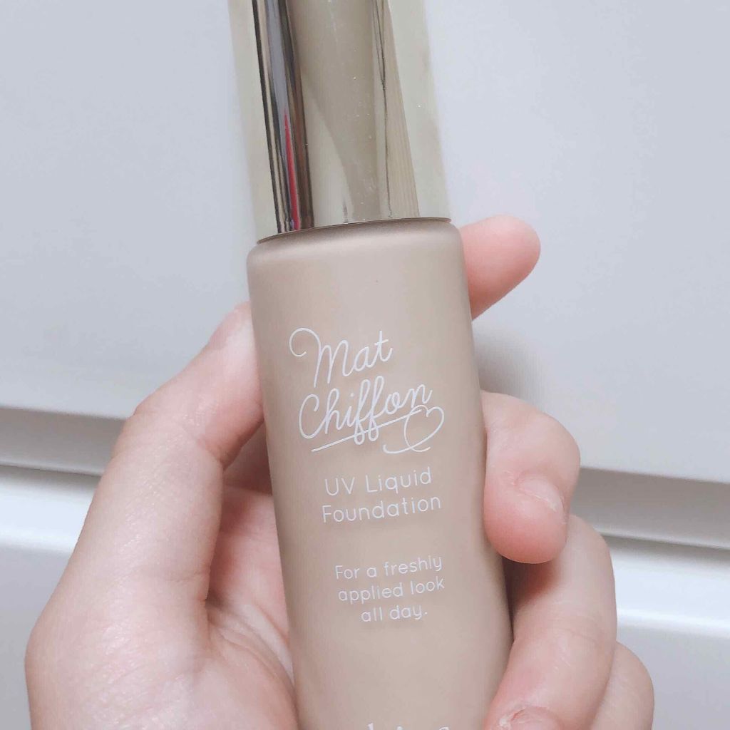 kiss キスマットシフォンUVリキッドファンデ01ライトピンクオークルSPF25/PA++やや重ためなガラスボトルのプッシュタイプ手の甲に出した後傾けても垂れない少し固めのテクスチャ仕上がりはセミマット展開カラーの中では唯一のピンク系だけど...