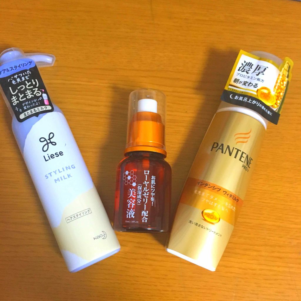 どーもこんにちは!今回は先日購入したケア用品たちについて!1番左はリーゼスタイリングミルクまとまるミルクですこれはアイロン後、外出前などに崩れないために使用していますまだこれといった効果(?)は感じられませんが匂いが個人的に好きです💕次は真ん...