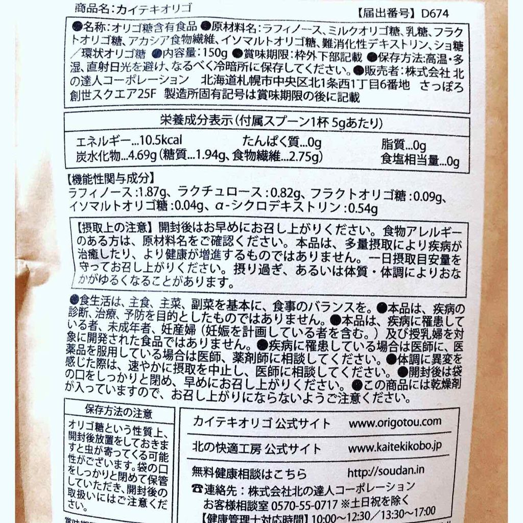 - ラフィノース、ミルクオリゴ糖、乳糖、フラクトオリゴ糖、アカシア食物繊維、イソマルトオリゴ糖、難消化性デキストリン、ショ糖/環状オリゴ糖