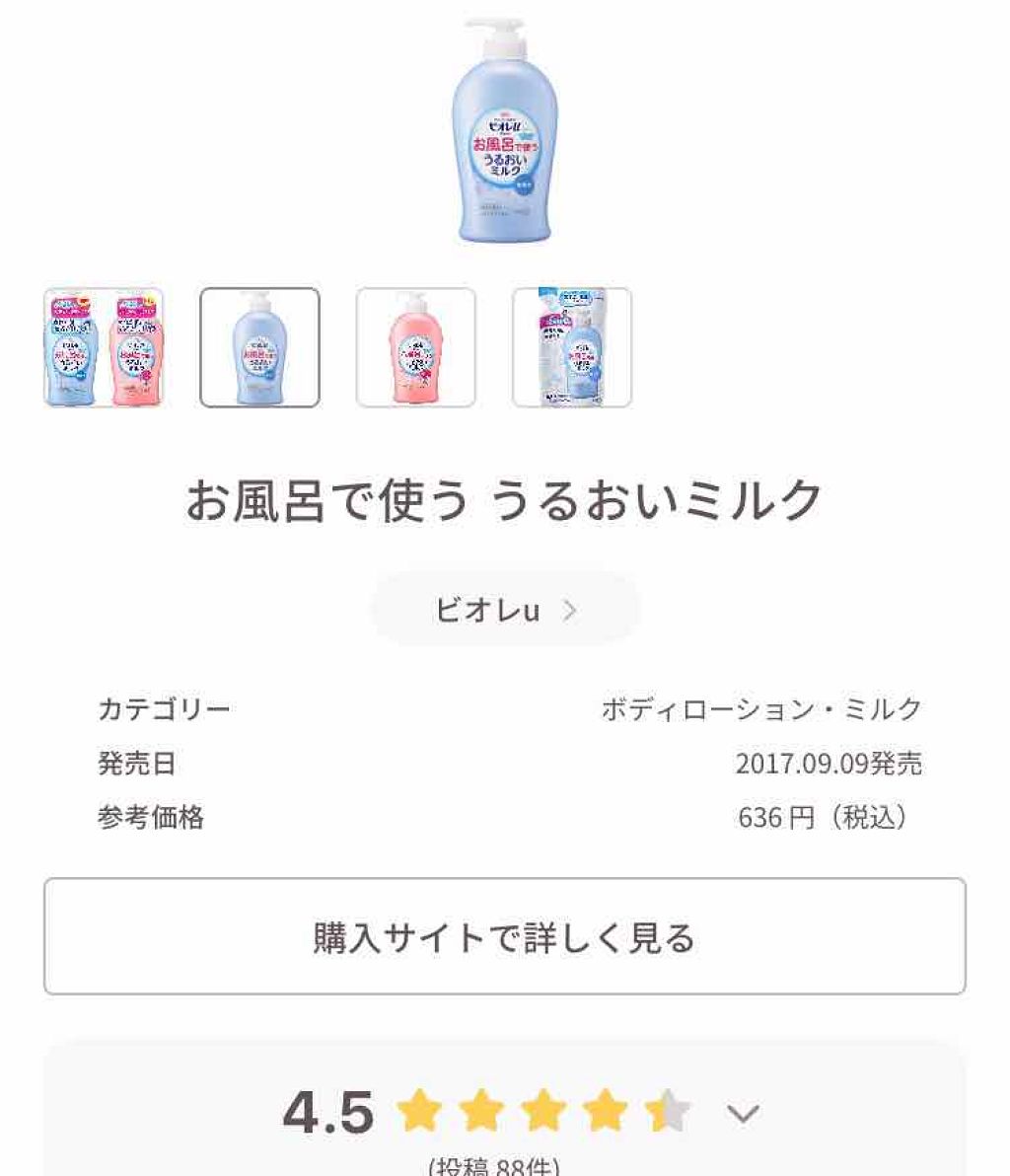 商品詳細情報ビオレu お風呂で使う うるおいミルク 無香料
