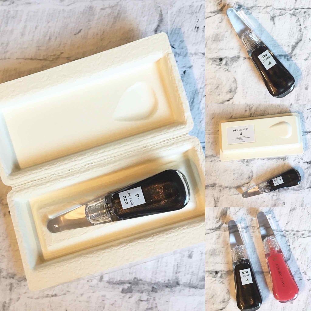 UZUBYFLOWFUSHI38°C/99°Fリップトリートメントリップ美容液-4BLACKツヤツヤ、少しキラキラ、スケルトンブラックな仕上がりになります🖤使用感には満足ですが思っているより暗めになるので体調悪くみえる場合がありそう😂妹も使っ...