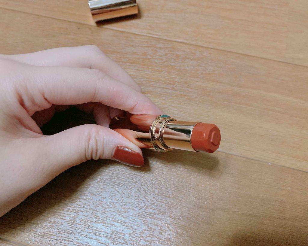 スルスルっととろけるように塗れます😌✨ 発色も色持ちもよくてコスパもいいのでお気に入りでしたがついに全色廃盤…😭 こちらはプチプラではあまり見かけないオシャレなテラコッタカラーです🙌🏻 落ち着いたカラーで一気にオシャレ顔になれます💃