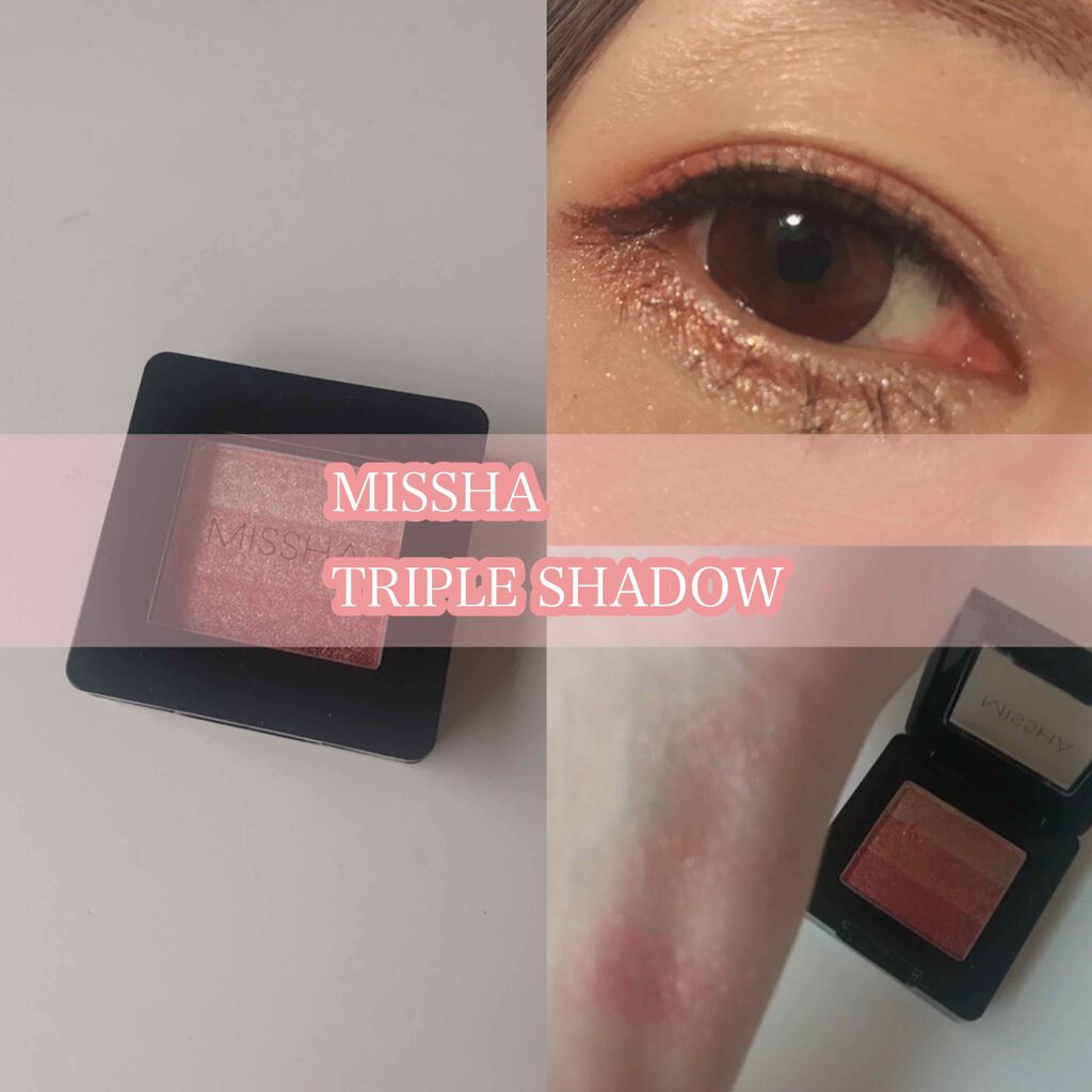 【速攻グラデ♡プチプラ3色ローズ】MISSHAトリプルシャドウNo.16ローズフォンデュ参考価格836円(税込)シマーなキラメキの濃淡3色を順番に配置したアイシャドウ♪これ、幅がめちゃんこ狭くて単色では取りにくいんだけど指で取れば2色一気に塗...