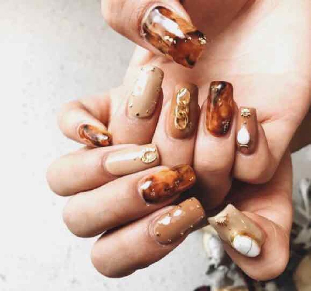 カーキ、ベージュ、グレー系セルフ秋ネイル💅季節の変わり目に重宝するのが、グレージュカラーのネイル。暑い日や涼しい日が混在する秋だからこそ、どちらの装いにもマッチするカラーを一本持っているとかなり使えます♡2枚目🎥左右の手で単色を塗り分けたキラ...
