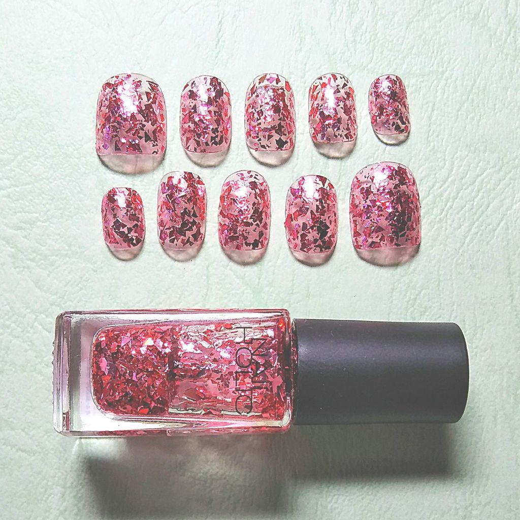 - ひと塗りで、ダイナミックなフレークを指先にオン。 存在感のあるフレークの多彩な輝きで、POPな印象に仕上がります。 ネイルカラーと合わせても、単品使用でも質感を楽しめます。 立体的で厚みのある仕上がりにもかかわらず、速乾性が高く、素早くキレイに仕上がります。 フレークをキャッチし、狙ったところにしっかり塗布できる短めブラシを採用。
