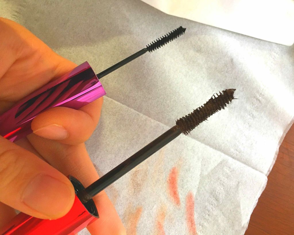 細いブラシで細かいところまで塗れる 柔らかめのブラシ 透け感はないけど、少し柔らかい印象のブラック カーブしてるブラシでまつ毛にフィット ハリ感がある 暖かみのあるブラック 太いブラシで塗りにくい 硬めのブラシ 青みのある?ブラック