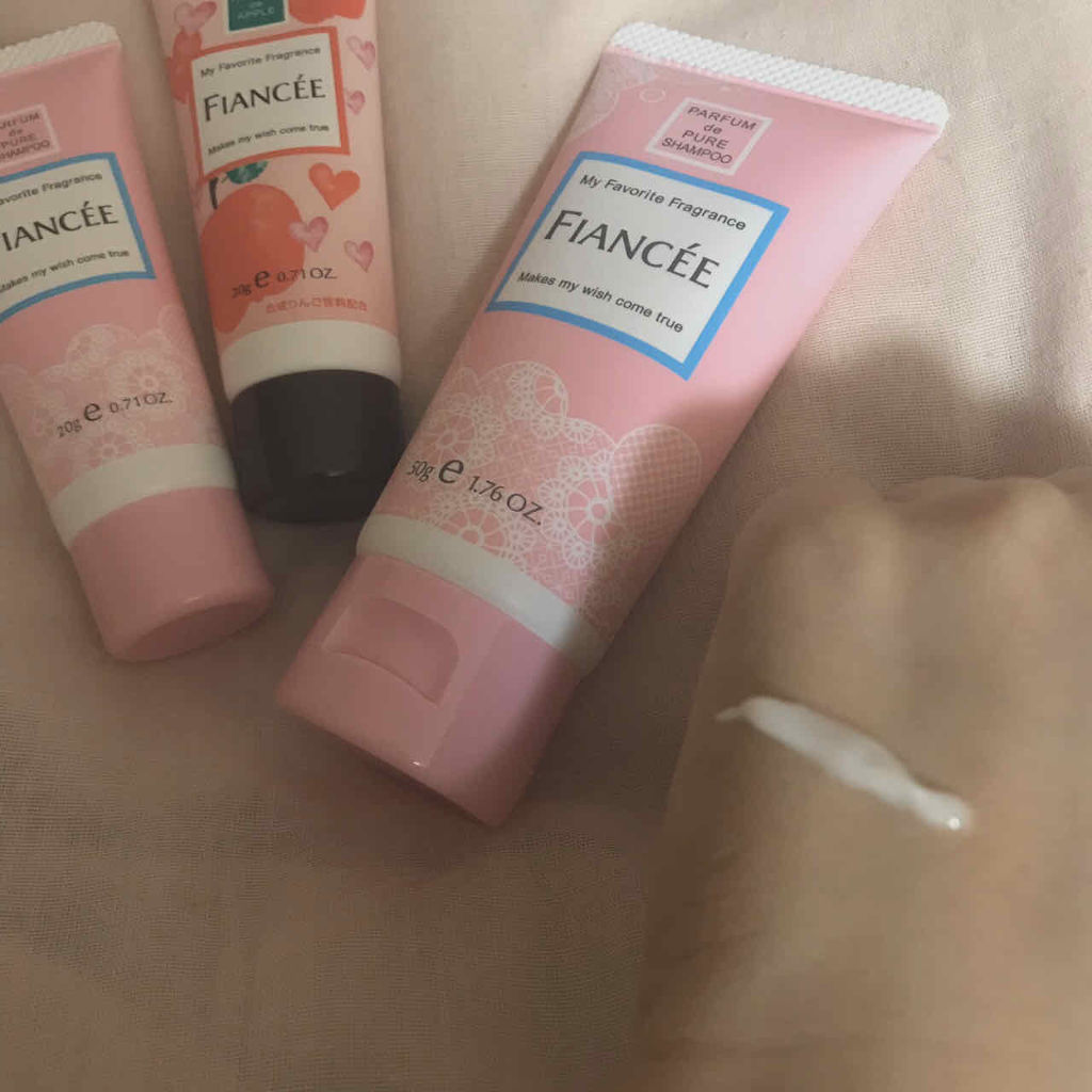 フィアンセ ハンドクリームピュアシャンプーの香り ミニサイズ甘いアップルのいい香り〜✨白色のなめらかなクリームしっとりと保湿してくれます(。♡‿♡。)多少のベタつきはありますがナイト用手袋嵌めて翌日にはサラサラになってます!!パケ...